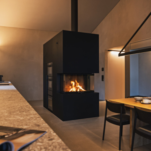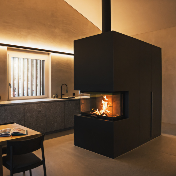 «È stata una decisione facile per noi: invece di collocare uno stufa in modo discreto in una nicchia laterale della parete, abbiamo deciso di fare del VISIO 3 L il capolavoro del soggiorno, sollevato su una base.»