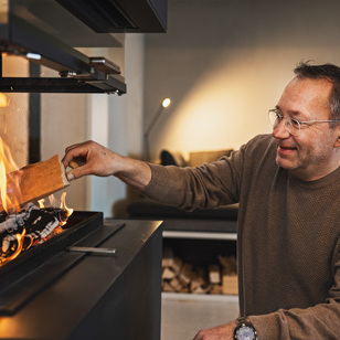 «Io e l'architetto Claudio Holdener avevamo in mente un camino a legna su una parete laterale del soggiorno e durante la nostra visita allo showroom di Cham, anche queste stufe erano l'argomento principale», racconta Guido Heinrich, «fino a quando Erwin Hauenstein, fondatore di Attika, ci ha suggerito di dare un'occhiata al camino VISIO 3 L».