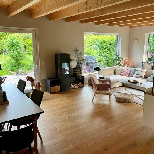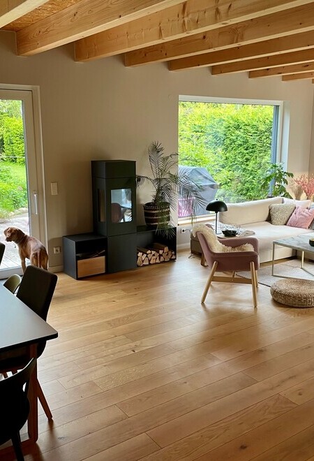 «Abbiamo cercato a lungo una stufa semplice ed elegante, senza fronzoli e con finestre su tre lati e alla fine l'abbiamo trovata con la NEXO di Attika», racconta Rike. Quando la famiglia Bassewitz si è finalmente trasferita, era felicissima.