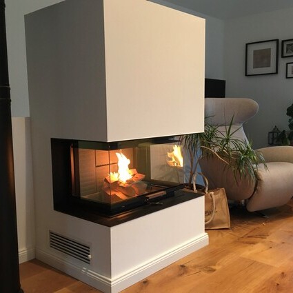 Grazie alla tecnologia all'avanguardia della camera di combustione, VISIO 3 raggiunge bassi livelli di calore anche con una fiamma di grandi dimensioni, e quindi si distingue in ambienti ben isolati e con esigenze di riscaldamento in profondità, ad esempio. I vetri ceramici rivestiti di infrarossi e l'efficiente pulizia termica del vetro lavorano insieme per garantire una chiara visibilità del fuoco in ogni momento. La maniglia in rovere tinto scuro e la cornice opzionale in acciaio inox completano con eleganza la nuova esperienza con il fuoco.
