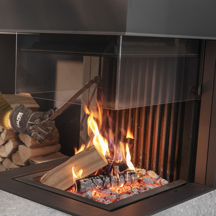 Design elegante e minimalista, combinato con un'innovativa ed efficiente tecnologia della camera di combustione e una pratica facilità d'uso. Con il suo vetro quasi senza cornice, il camino a legna di Kalfire offre la massima visione del fuoco e della bellissima immagine della fiamma.