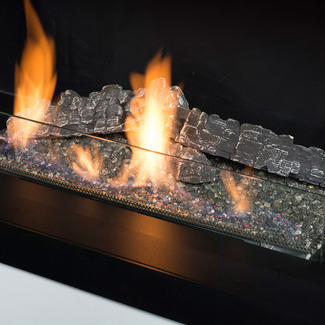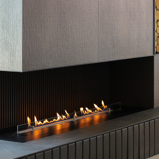 Variante: platino, porta del focolare in vetro pieno, con due finestre laterali, CleverAIR