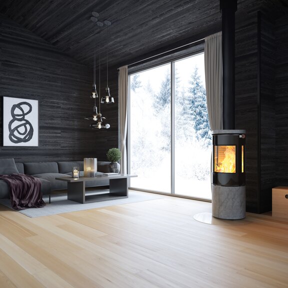 Come maestro dell'accumulo di calore, JUNO 120 L continua a emanare calore anche ore dopo che il fuoco si è spento. Le lastre di pietra ollare o di pietra naturale finemente lucidate rimangono calde fino a 15 ore. Oltre alle sue qualità di accumulo, JUNO 120 L è anche un maestro del design.
