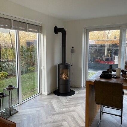 La serie VIVA L è disponibile anche come camino a gas per il funzionamento con gas naturale o liquido. Dia un'occhiata alla controparte VIVA 100 L GAS.