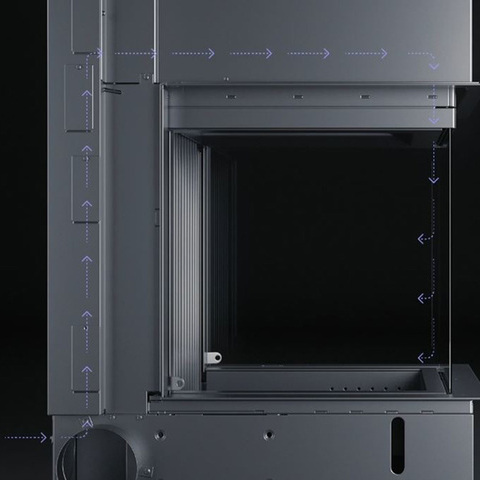 Design del pannello posteriore del camino a legna Kalfire W66/48S a 3 lati